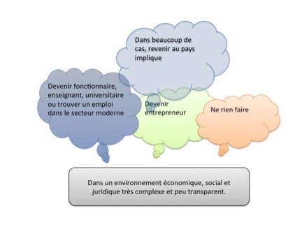 Mais quel que soit le moyen d’accès, volontaire ou dirigée, le retour au pays reste un problème et beaucoup tardent à revenir. Ils se sentent pris au piège d’une surqualification peu compatible avec l’écosystème national.